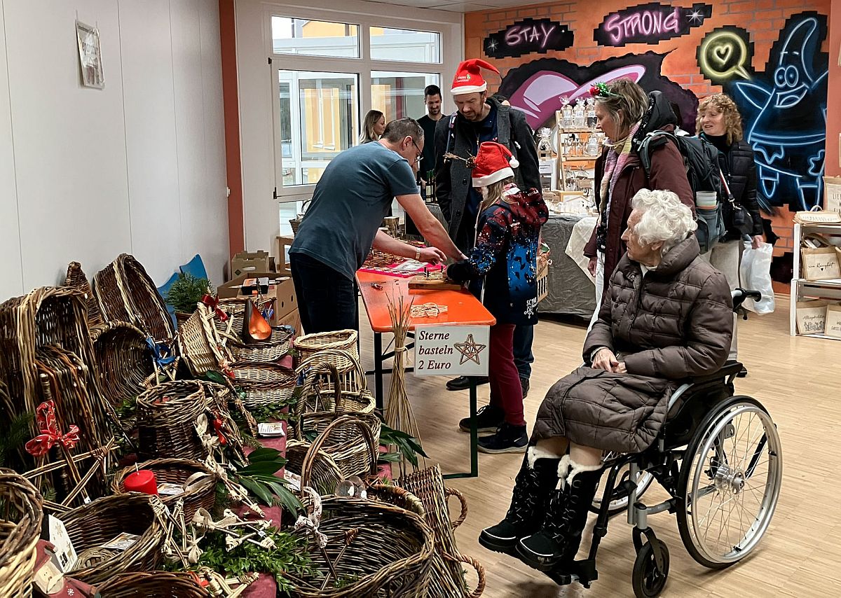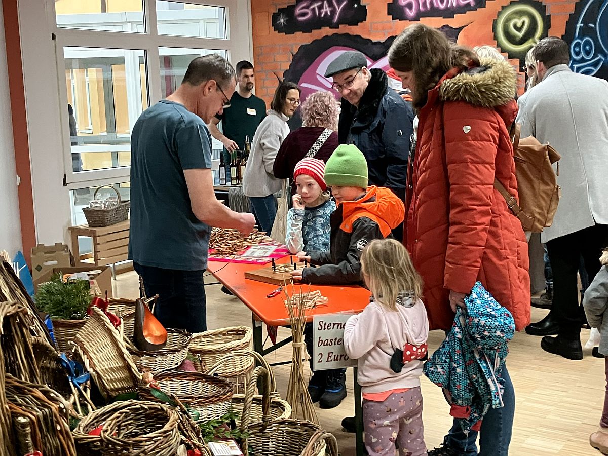 Dicht umlagert war mein Kollege, der mit den Kindern Sterne aus Peddigroh bastelte.