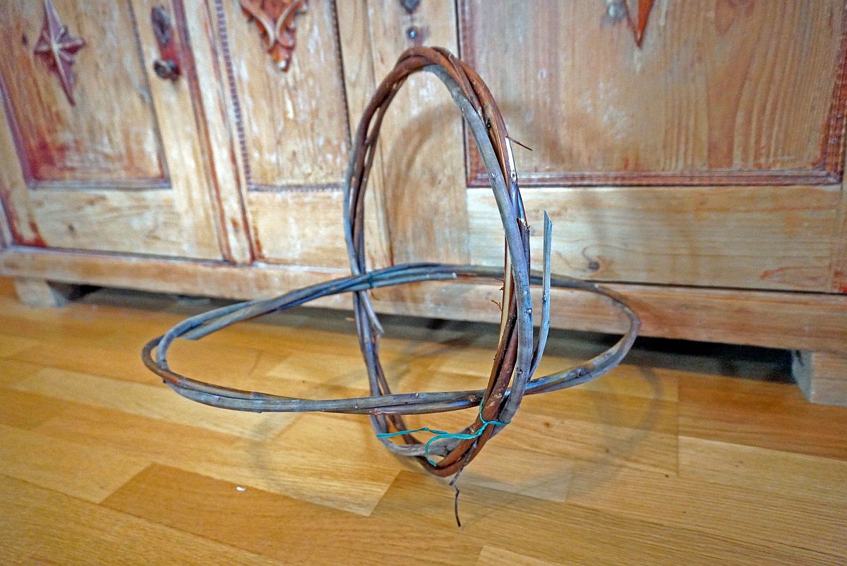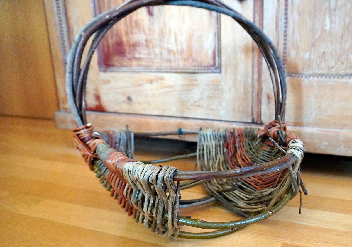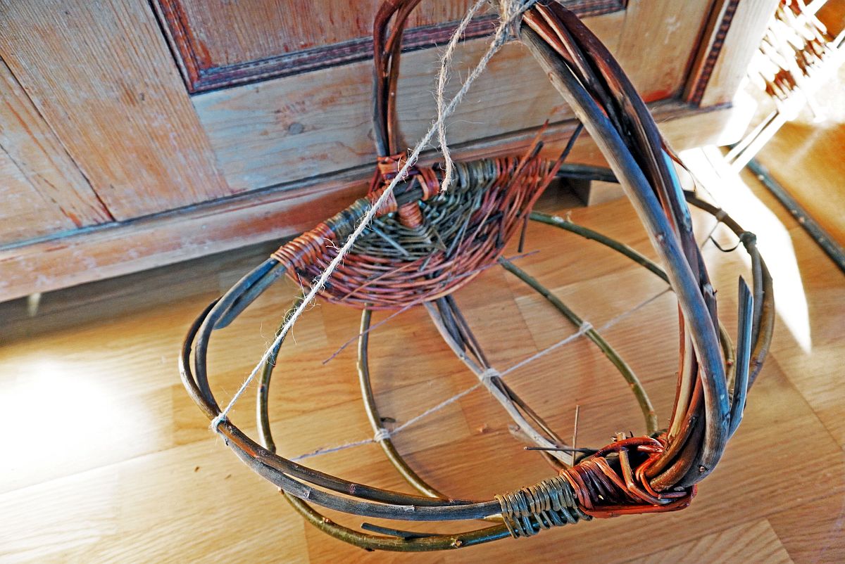 Nach langer Zeit mal wieder einen Rahmenkorb gemacht. Rahmenkorb wird er wohl deshalb genannt, weil man zuerst den Rahmen oder das Gerüst macht, das man dann umflechtet.