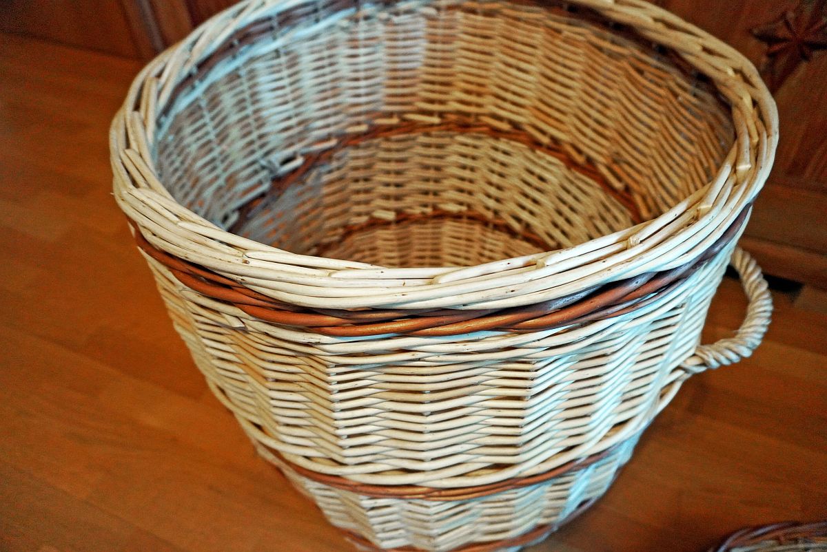 Wäschekorb aus geschälten Weiden